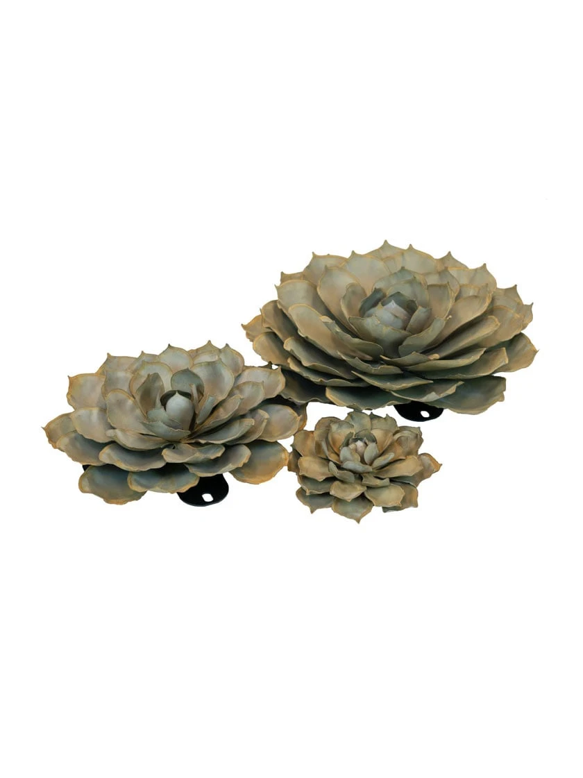 Desert Steel Blue Rose Succulent Sculpture